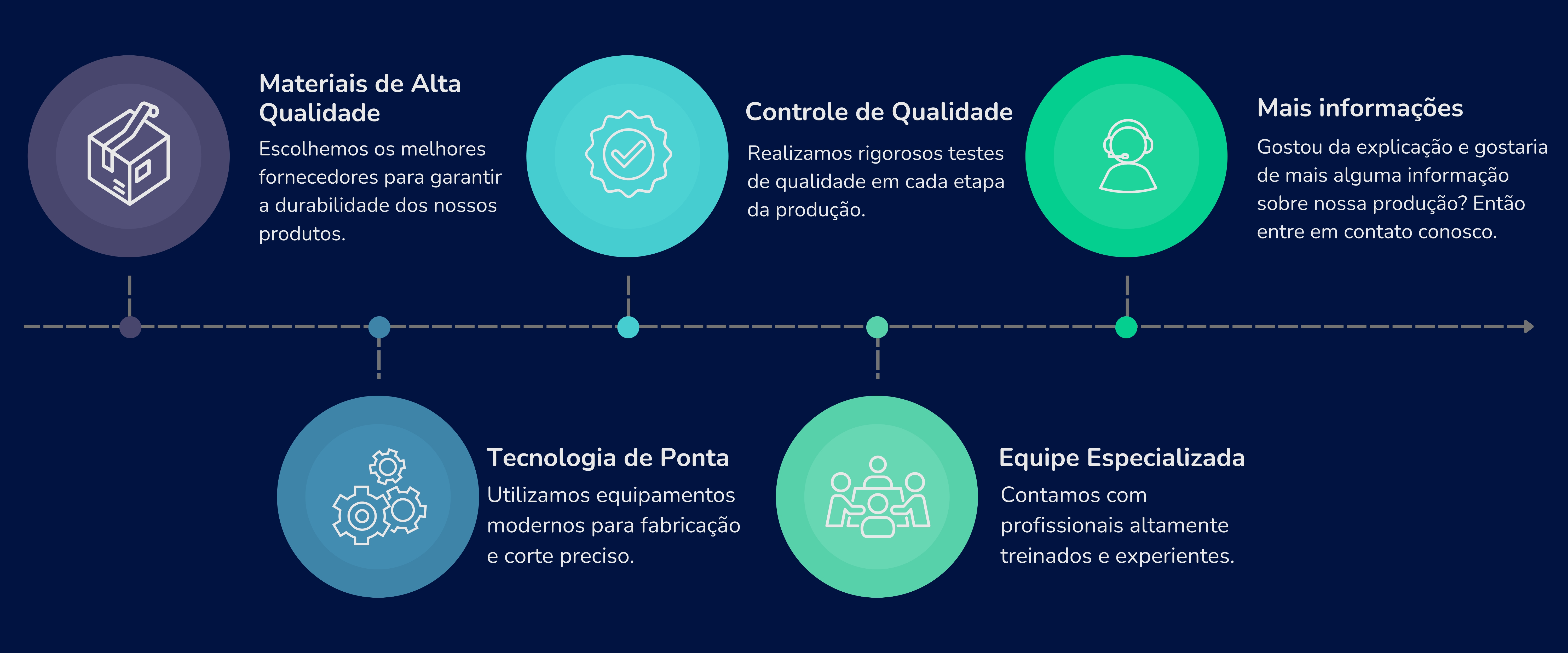Utilizamos apenas materiais de alta qualidade e tecnologia de ponta para garantir que cada peça atenda aos mais altos padrões de qualidade.